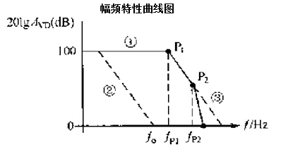 AD8544的內(nèi)部是一個多級放大器。其對數(shù)幅頻特性如圖1所示中的曲線①(實(shí)線)。對數(shù)幅頻特性曲線在零分貝以上的轉(zhuǎn)折點(diǎn)稱為極點(diǎn)。圖中,稱P1 P2點(diǎn)為極點(diǎn)。極點(diǎn)對應(yīng)的頻率稱為轉(zhuǎn)折頻率,如fp1,fp2,第一個極點(diǎn),即頻率最低的極點(diǎn)稱為主極點(diǎn)。 在極點(diǎn)處,輸出信號比輸入信號相位滯后45°,幅頻特性曲線按-20dB/10倍頻程斜率變化,每十倍頻程輸出信號比輸入信號相位滯后90。極點(diǎn)越多,越容易自激,即越不穩(wěn)定。為使集成運(yùn)放工作穩(wěn)定,需進(jìn)行相位(頻率)補(bǔ)償。