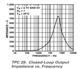 運(yùn)放輸入本身可能呈很大的容性,模擬Cpar。特別是低噪聲和低Vos放大器具有大的輸入晶體管,其輸入電容比其它放大器都要大,會加載它們的反饋網(wǎng)絡(luò)。就像反饋電容可能侵蝕相位余量一樣,它也會加載電容。圖顯下示了在一些增益設(shè)置條件下AD8544輸出阻抗與頻率的關(guān)系。注意,單位增益輸出阻抗要低于更高增益的阻抗。完整反饋允許開環(huán)增益減小放大器的固有輸出阻抗。這樣,下圖中增益為1的輸出阻抗一般要高出單位增益結(jié)果10倍。反饋衰減器會降低環(huán)路增益使之到1/10值,否則會減小閉環(huán)輸出阻抗。開環(huán)輸出阻抗約750,從增益100曲線高頻區(qū)的平坦部分很容易看出來。在從大約增益帶頻率/100到增益帶寬頻率的這段區(qū)域中,基本上沒有足夠的環(huán)路增益可減小開環(huán)輸出阻抗。如下圖:
