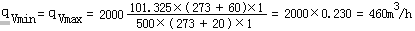 式中 qVn,qV--分別為標(biāo)準(zhǔn)狀態(tài)下(0oC或20oC,101.325kPa)和工況下的體積流量,m3/h;